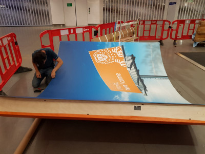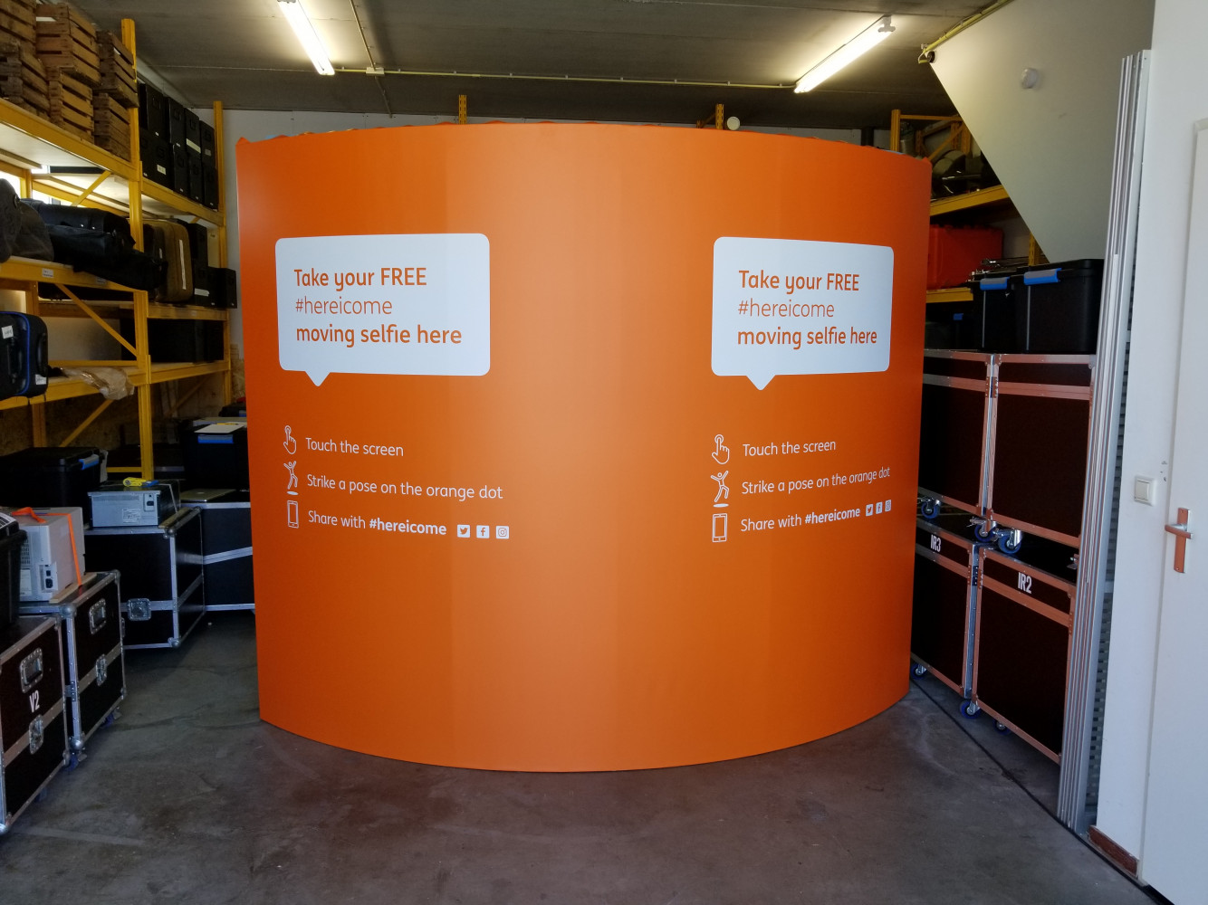 Naast het maken van de photobooth en het ontwikkelen van de benodigde software, hebben we ook een custom achterwand en vloerpot gebouwd. De achterwand is gebogen, om de perfecte achtergrond voor je selfie te creëren. De vloerpot trekt je aandacht en maakt het plaatje helemaal compleet!