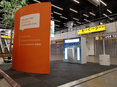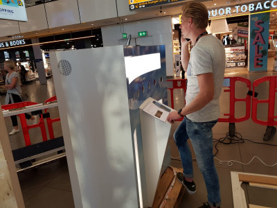 Medio maart kwam de aanvraag van Brandbase voor deze unieke booth binnen. We waren meteen enthousiast en hebben er alles aan gedaan om de opdrachtgever te overtuigen dat Fotodoos de juiste partij was om mee in zee te gaan. Nou kun je je vast voorstellen dat het bouwen van een stand alone booth voor op zo’n groot vliegveld als Schiphol een ingewikkelde klus is. Zo moet de booth natuurlijk geheel hufterproof zijn, heb je brandveiligheidscertificaten nodig voor alle materialen en moesten we nieuwe software ontwikkelen waarmee de booth 24/7 zelfstandig zou kunnen draaien.